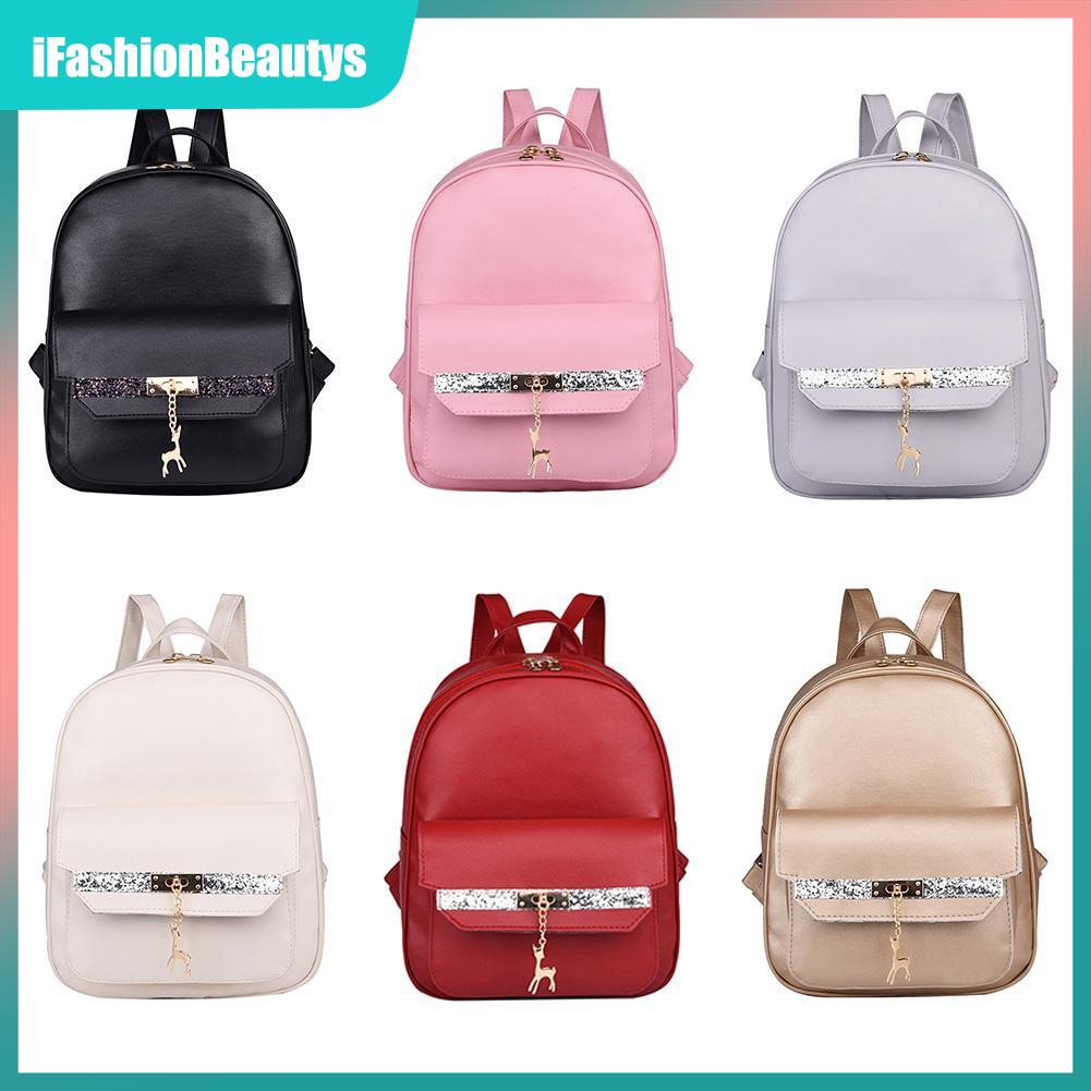 Women Glitter Pu Leather Deer Backpacks Girls Travel Shoulder
