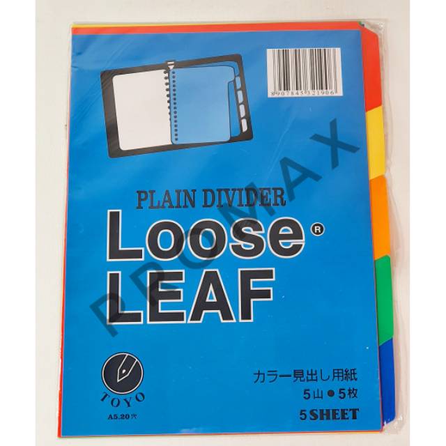 Index Divider Pembatas Binder Note Loose Leaf A5 Isi 5 Tab 20