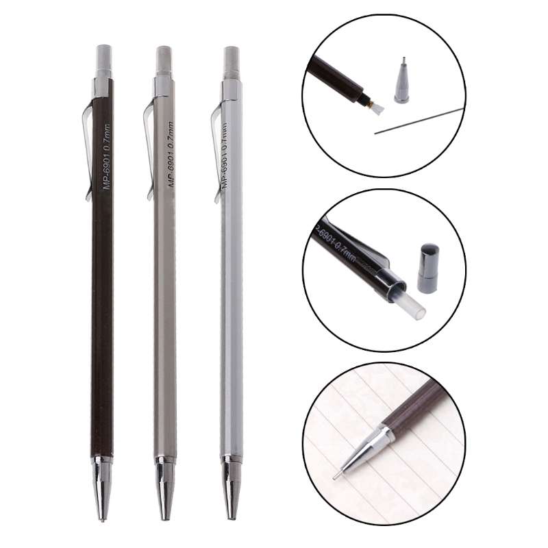 Love 3pcs 0 7mm Automatic Pencil Office School Metal Pens